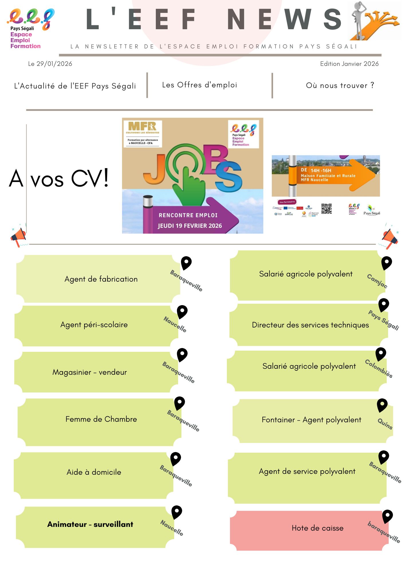 Retrouvez toutes les actualités du moment où à venir ainsi que les offres à pourvoir en Pays Ségali.